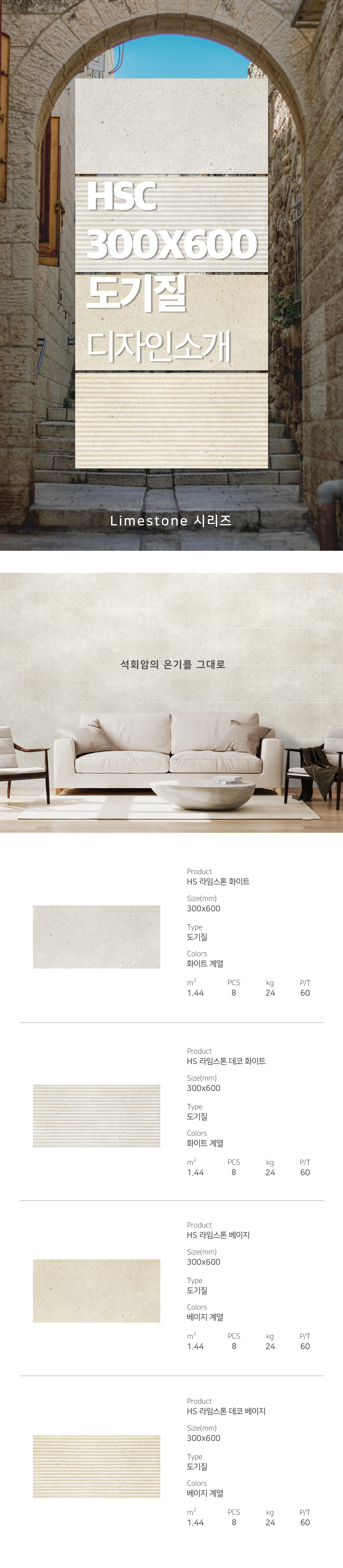 300X600 도기질 '라임스톤' 시리즈 (중국산)