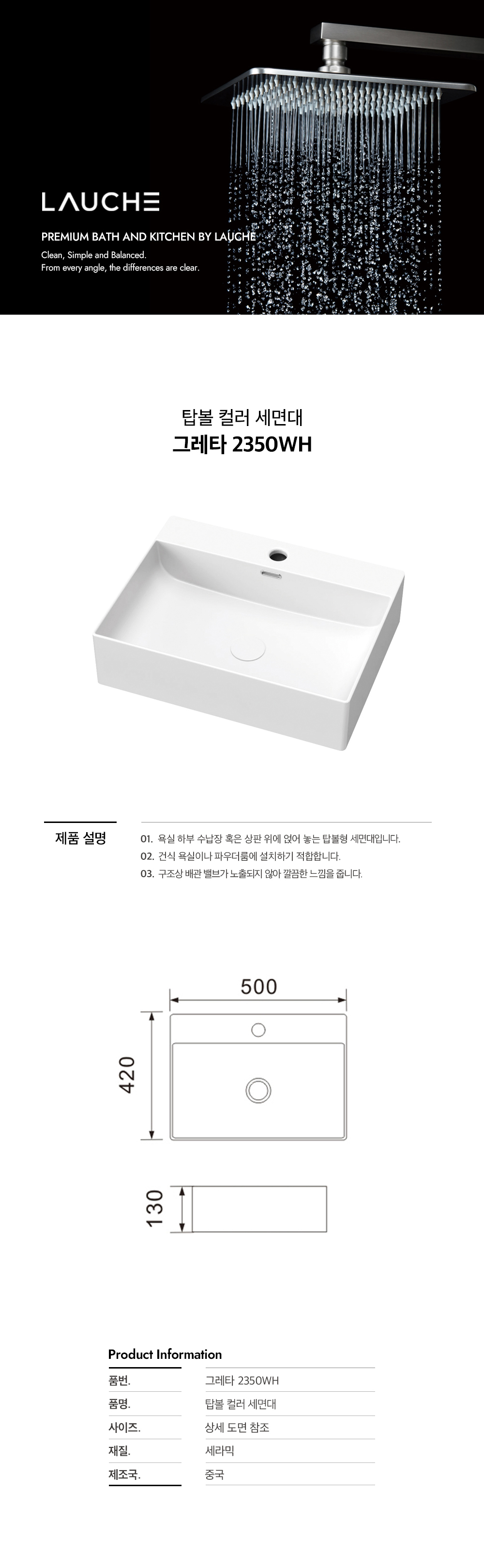 HOME > LAUCHE > 세면대 > 탑볼(세라믹)